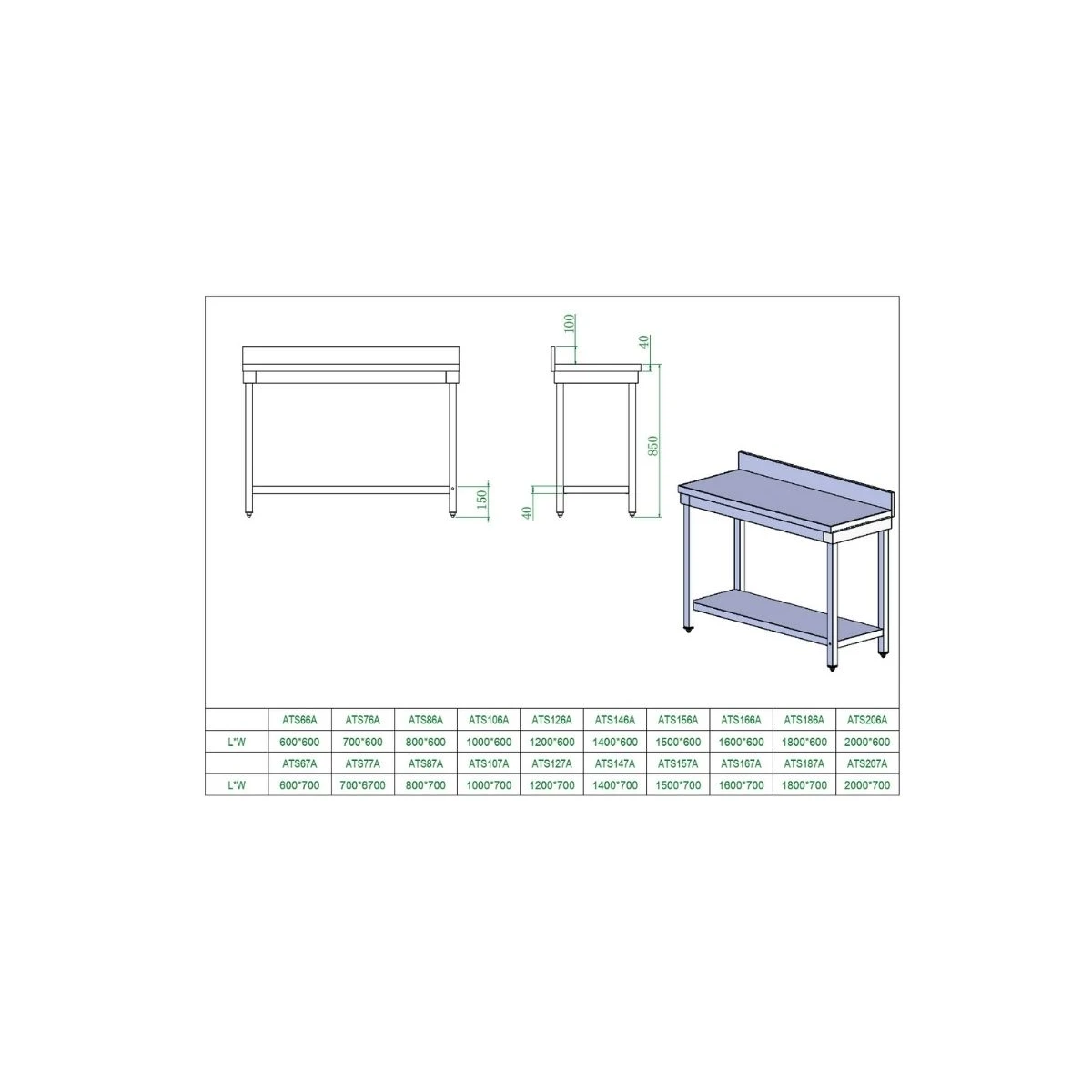 Arbeitstisch mit Aufkantung und Grundboden aus Edelstahl – 700 x 700 x 850