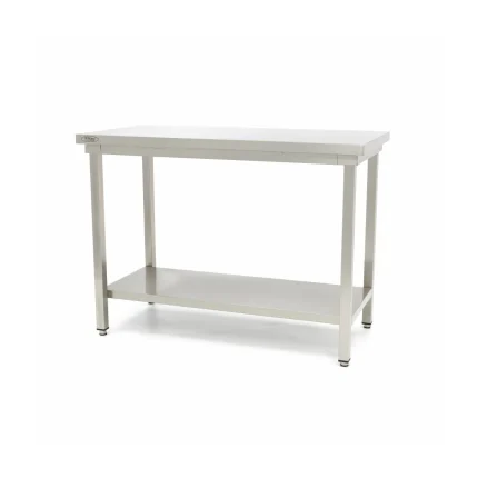 Gastro Edelstahltisch – 140 x 60 cm – Einstellbare Höhe – mit Lagerregal