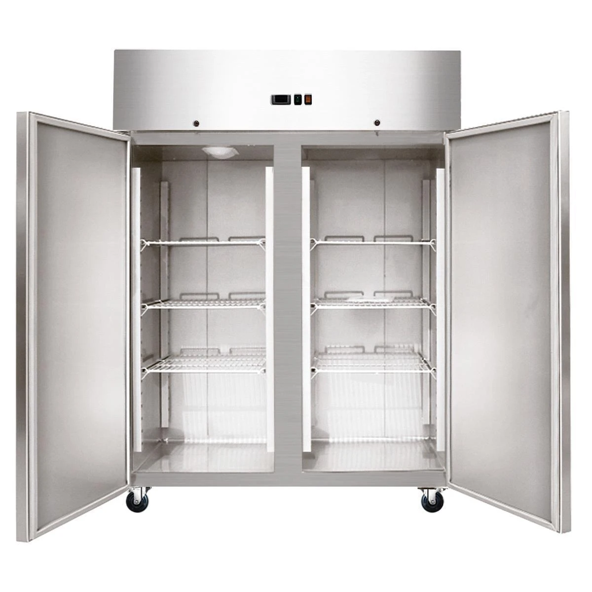 Der Skyrainbow Umluft Kühlschrank bietet hohe und konstante Qualitätsansprüche direkt vom Hersteller zu einem hervorragendem Preis an. Der Skyrainbow Umluft Kühlschrank aus Edelstahl mit 2 Türen ist perfekt geeignet für Großküchen und Restaurants, um Lebensmittel zu lagern und zu kühlen, da der Temperaturbereich von -2°C bis +8°C nach Ihrem Individuellen Bedarf eingestellt werden kann und über das digitale Display kontrollieren können. Die abgerundeten Ecken und Kanten erleichtern die Reinigung. Durch Einsatz des umweltfreundlichen Kältemittels R290 ermöglicht es unserm Gerät eine lange Lebensdauer und Energieersparnis. Produkt Eigenschaften