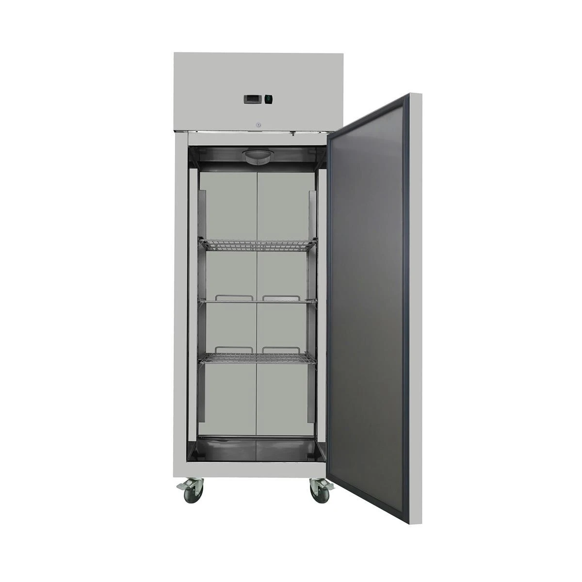 Der Skyrainbow Statisch Kühlschrank bietet hohe und konstante Qualitätsansprüche direkt vom Hersteller zu einem hervorragendem Preis an. Der Skyrainbow Statisch Kühlschrank aus Edelstahl mit einer Tür ist perfekt geeignet für Großküchen und Restaurants, um Lebensmittel zu lagern und zu kühlen, da der Temperaturbereich von -2°C bis +8°C nach Ihrem Individuellen Bedarf eingestellt werden kann und über das digitale Display kontrollieren können. Die abgerundeten Ecken und Kanten erleichtern die Reinigung. Durch Einsatz des umweltfreundlichen Kältemittels R290 ermöglicht es unserm Gerät eine lange Lebensdauer und Energieersparnis. Produkt Eigenschaften