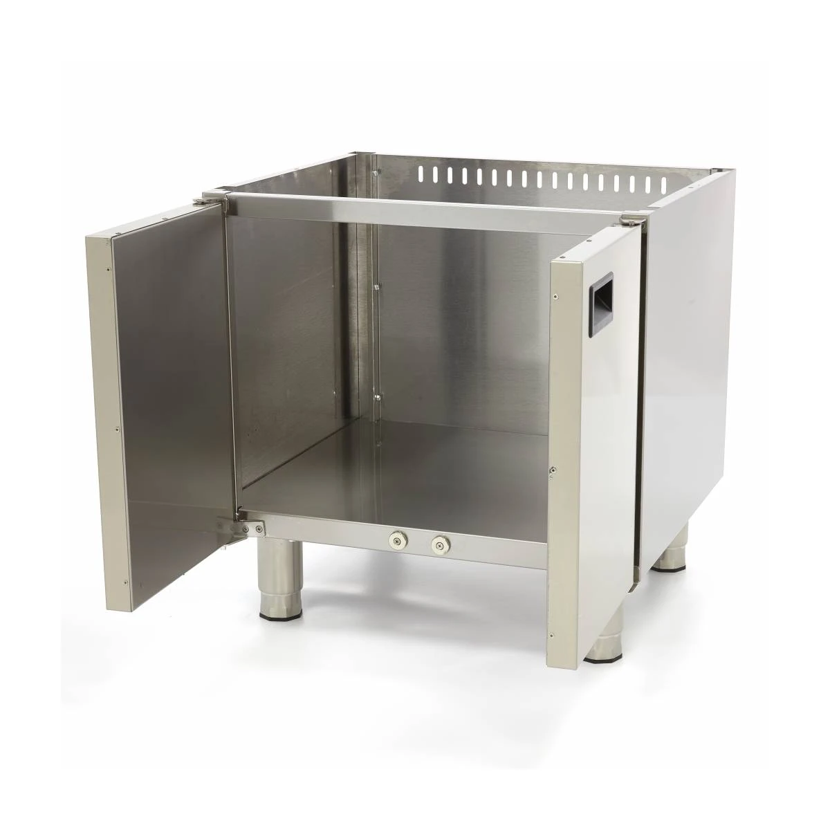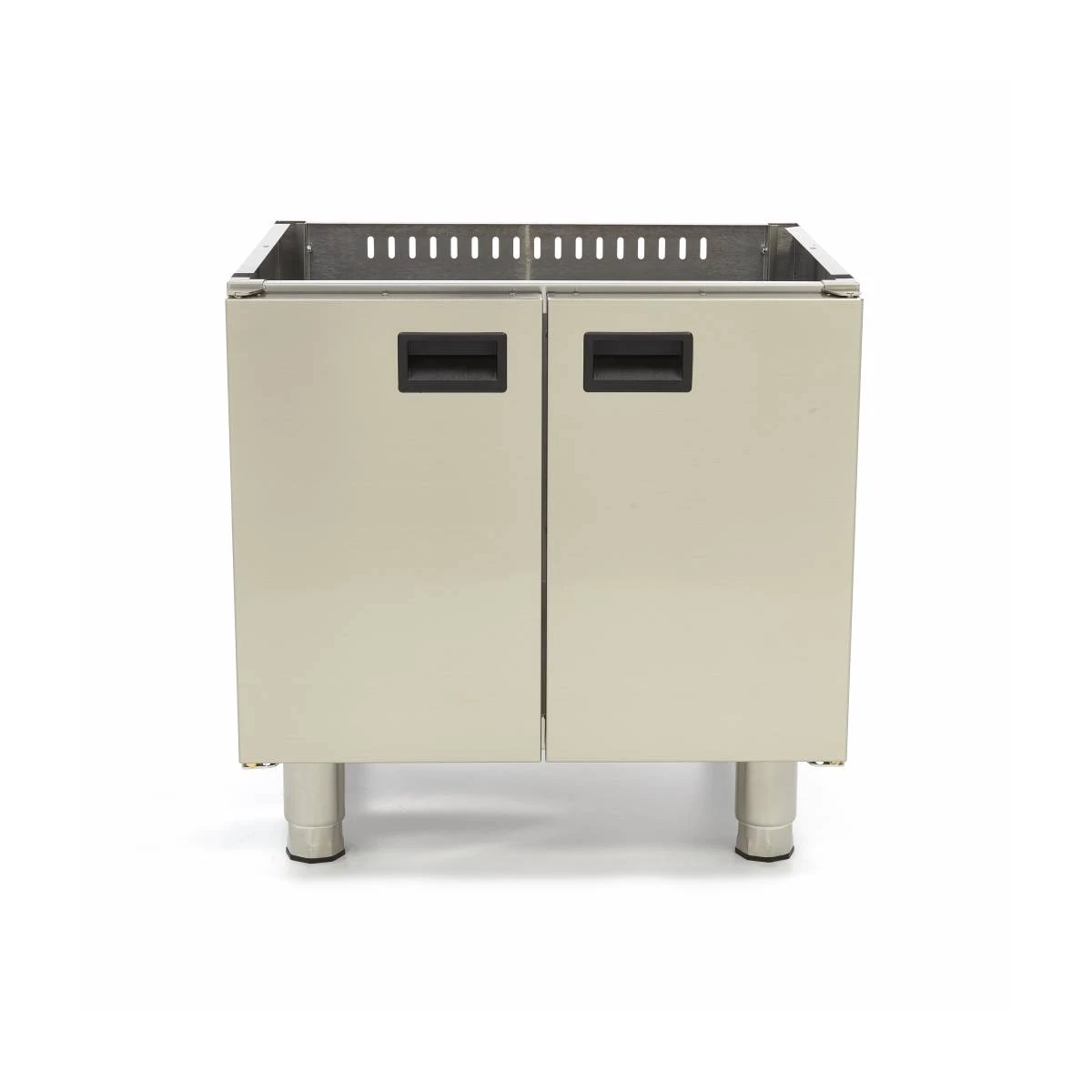 Ein Wagen mit zwei Türen ist eine Bereicherung für jede Küche. Wie oft fehlt Ihnen der Platz, um Töpfe und Pfannen einfach zu verstauen? Außerdem ist der Verbindungsmechanismus so konzipiert, dass die Geräte der Kochserie 600 problemlos auf dem Sockel montiert werden können. Die beiden doppelwandigen Türen sind mit einem ergonomischen Griff ausgestattet, der das Öffnen und Schließen erleichtert. Der Wagen ist mit einem Magnetverschluss ausgestattet, der verhindert, dass die Türen offen gelassen werden