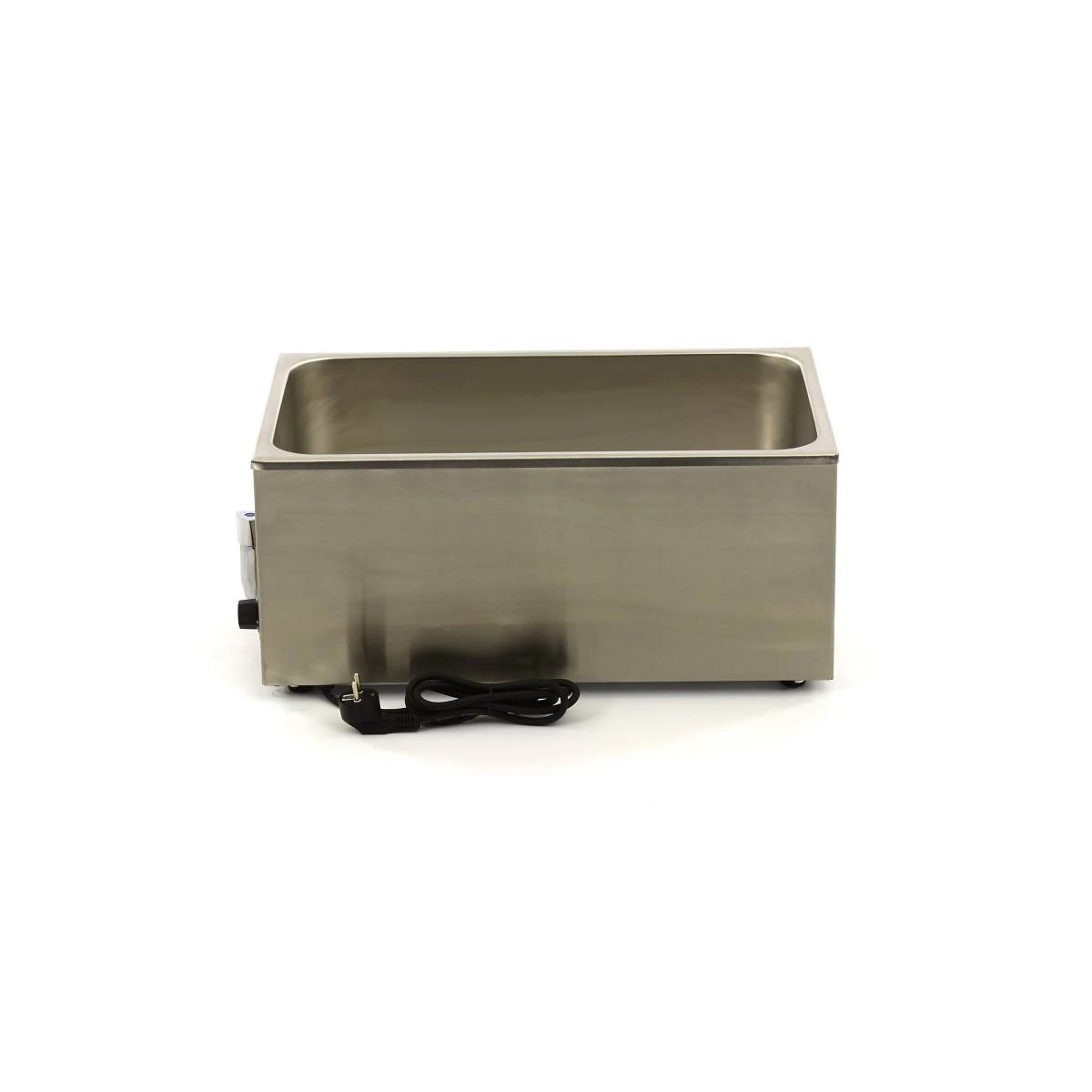 Diese Bain-Marie ist ideal zum Erwärmen von Schokolade, Saucen, Milchprodukten und Mischungen. Dank des formschönen Gehäuses und des nahtlosen Innenrands ist diese professionelle Bain-Marie sehr sicher in der Handhabung. Mit dem Ablasshahn lässt sich der Bain-Marie-Behälter leicht entleeren. Der Thermostat hat einen Temperaturbereich zwischen 31 und 95ºC und verfügt über Kontrollleuchten, die anzeigen, wann das Wasser die richtige Temperatur erreicht hat. Diese Bain-Marie kann mit GN-Behältern mit einer maximalen Höhe von 15 cm verwendet werden. Im Lieferumfang sind keine GN-Behälter oder Deckel enthalten, diese können jedoch über unseren Webshop erworben werden.