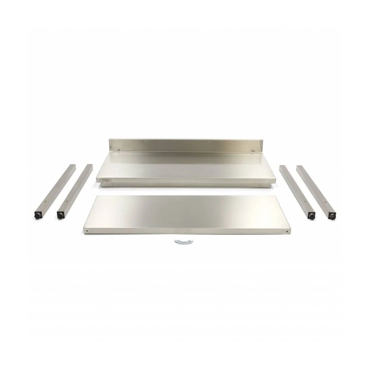 Sicherheit ist in der Gastronomieküche sehr wichtig. Deshalb hat dieser Tisch abgekantete Kanten, die geschweißt und poliert sind. So entsteht ein sauberer Arbeitsbereich ohne scharfe Kanten. Außerdem hat diese Arbeitsplatte einen erhöhten Rand an der Rückseite, um die Wand vor Spritzern zu schützen. Unter der Arbeitsplatte befindet sich ein Regal. Dieses ist nicht höhenverstellbar, eignet sich aber zur Ablage von Küchenutensilien oder als zusätzlicher Stauraum. Bei der Lieferung erhalten Sie den Tisch flach verpackt, aber innerhalb von 10 Minuten können Sie diesen professionellen Arbeitstisch aus Edelstahl zusammenbauen und einsatzbereit machen. Das Werkzeug, das Sie für die Montage des Tisches benötigen, ist im Lieferumfang enthalten.