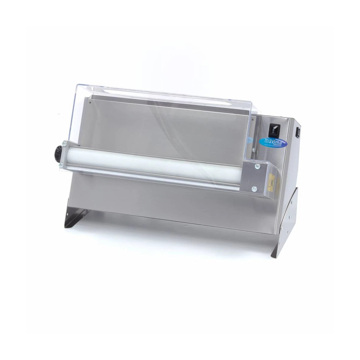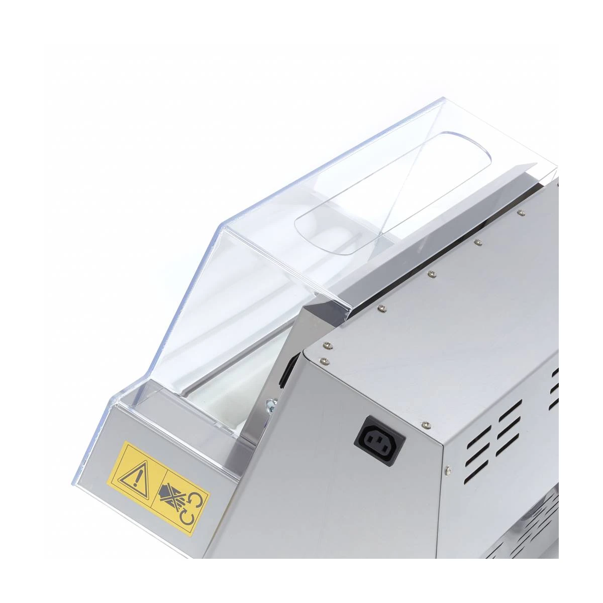 Dieser einzelne Fondantroller ist mit einem langlebigen und leistungsstarken Motor ausgestattet. Der Fondantroller ist mit einer Geschwindigkeit ausgestattet. Um sicher mit diesem Fondant-Roller zu arbeiten, ist er mit einer transparenten Kunststoff-Schutzabdeckung und einem Sicherheitsschalter ausgestattet. Die beiden breiten Edelstahlfüße sorgen für einen guten Stand. Das Gehäuse ist komplett aus Edelstahl gefertigt und lässt sich sehr leicht reinigen. Sie können die verschiedenen Teile aus dem Gerät nehmen und mit einem trockenen Tuch abwischen. Verwenden Sie kein Wasser, da die Mehlreste am Gerät haften bleiben können.