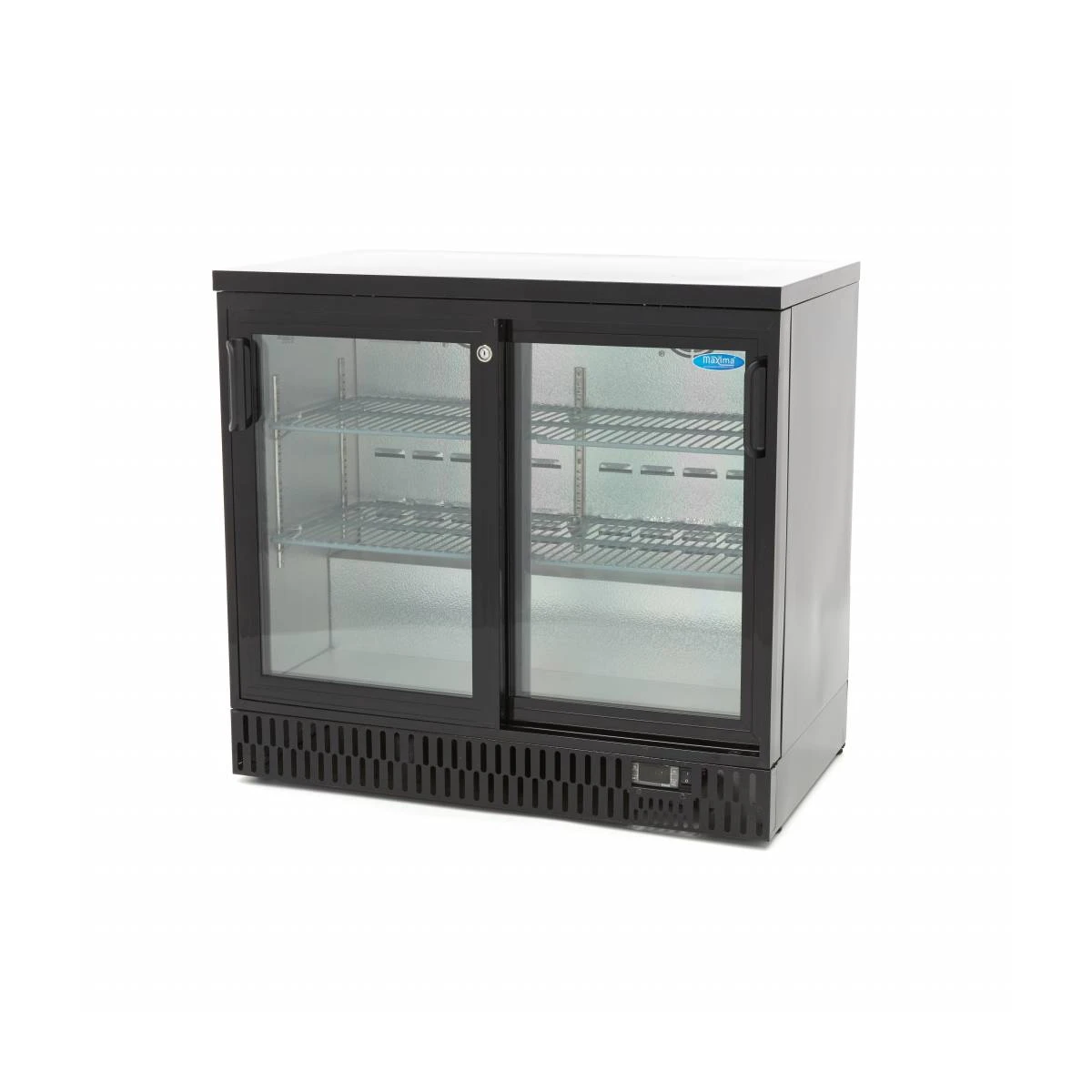 Um Getränke und Snacks professionell zu präsentieren und gleichzeitig gekühlt zu halten, brauchen Sie diesen luxuriös verarbeiteten, schwarzen Getränkekühlschrank. Er hat die ideale Größe für die Aufstellung auf der Bar oder dem Tresen. Dieses Modell hat ein Fassungsvermögen von 214 l und ist mit zwei Schiebetüren mit Doppelverglasung ausgestattet. Beide Türen sind mit einem Schloss versehen, um den Kühlschrank vollständig zu schließen. Damit die Produkte im Getränkekühlschrank noch besser zur Geltung kommen, ist er mit einer LED-Beleuchtung ausgestattet.