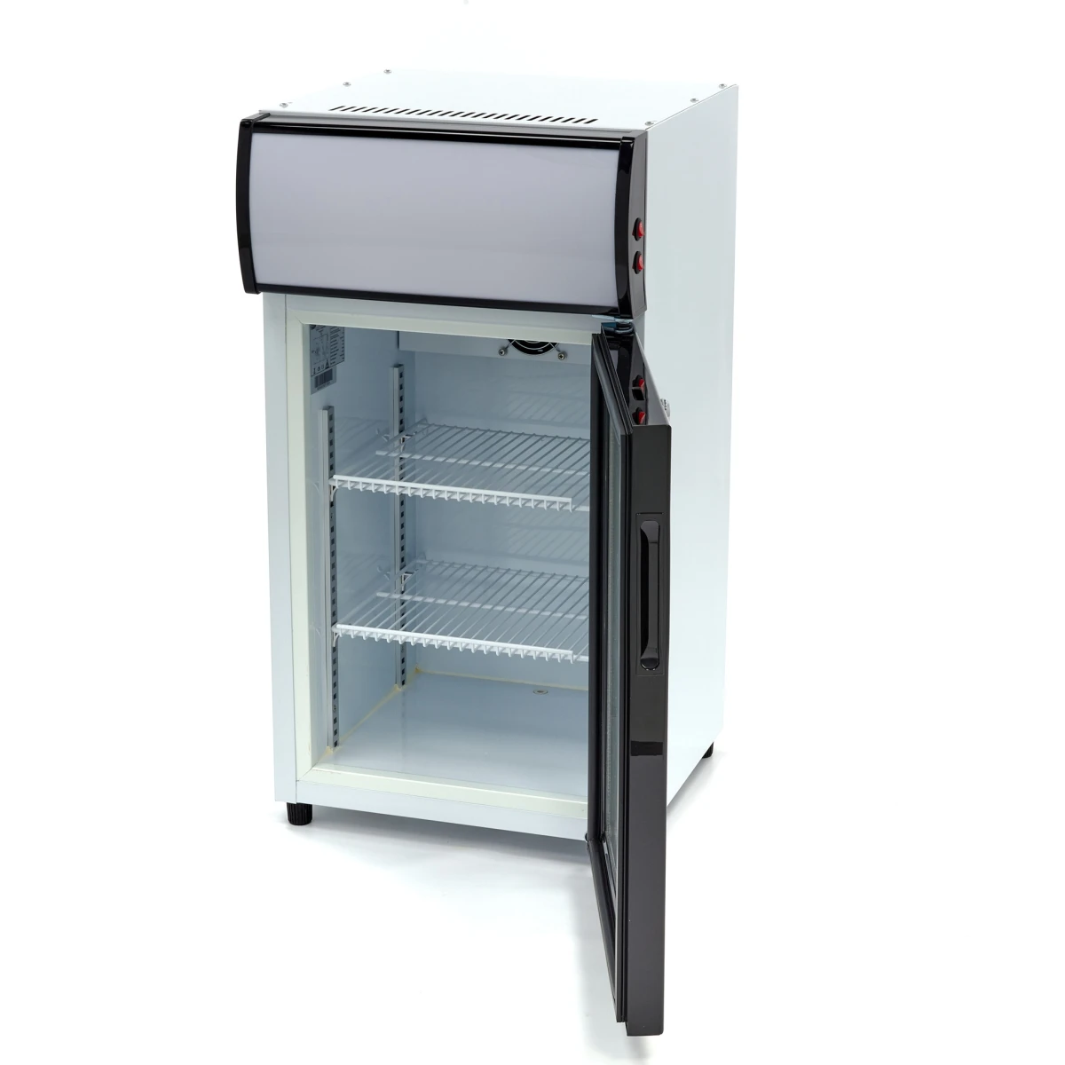 Mit Hilfe dieses professionellen Getränkekühlschranks können Sie Ihren Kunden zeigen, welche Getränke oder Snacks Sie im Angebot haben. Es handelt sich um ein handliches und kompaktes Tischmodell mit LED-Beleuchtung im Inneren, die Ihnen hilft, Ihr Angebot zu präsentieren. Er kann auch für belegte Brötchen oder andere Lebensmittel verwendet werden. Der Getränkekühlschrank hat eine Flügeltür mit Doppelverglasung, die den Zugang erleichtert und die Getränke kühl hält. Außerdem ist die Tür mit einem Schloss versehen, um sie geschlossen zu halten und zu verhindern, dass sich Kunden selbst bedienen. Das beleuchtete Display kann zu Werbezwecken genutzt werden.