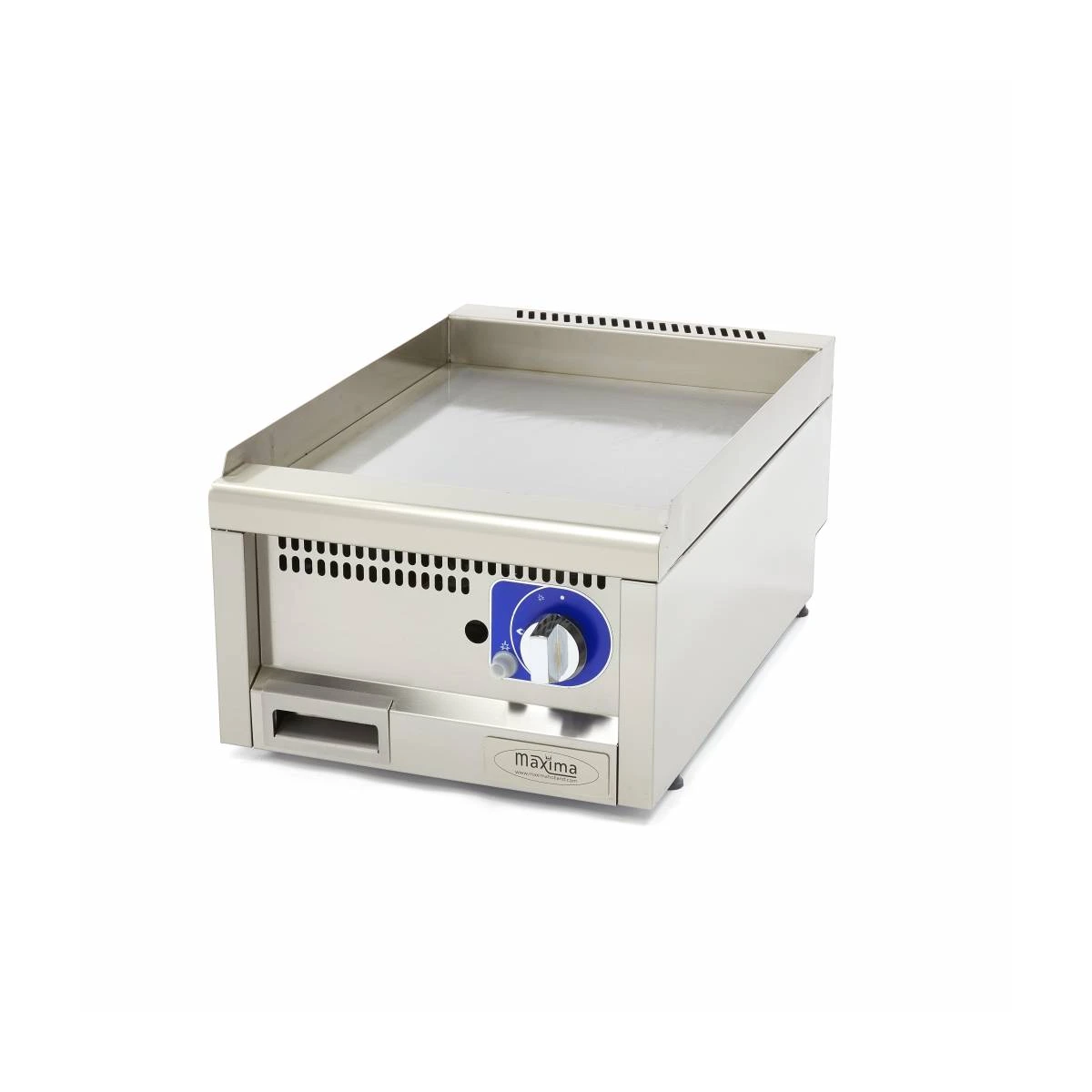 Dank des großen Abflusslochs ist die Grillplatte leicht zu bedienen und einfach zu reinigen. Der Grill verfügt außerdem über eine große 1-Liter-Auffangschale, die das überschüssige Fett auffängt. Mit dem benutzerfreundlichen Thermostat können Sie die Temperatur ganz einfach zwischen 50 und 300ºC einstellen. Möchten Sie den Grill in einer Kochlinie aufstellen? Das ist überhaupt kein Problem. Sie können diesen Grill auch auf einen Tisch oder eine Theke stellen. Die Gerichte lassen sich leicht zubereiten, denn der Grill heizt dank der Edelstahlbrenner schnell auf. Außerdem ist er mit einer Piezzo-Funken-Zündung ausgestattet. Sie können den Grill mit Flüssiggas oder Erdgas betreiben.