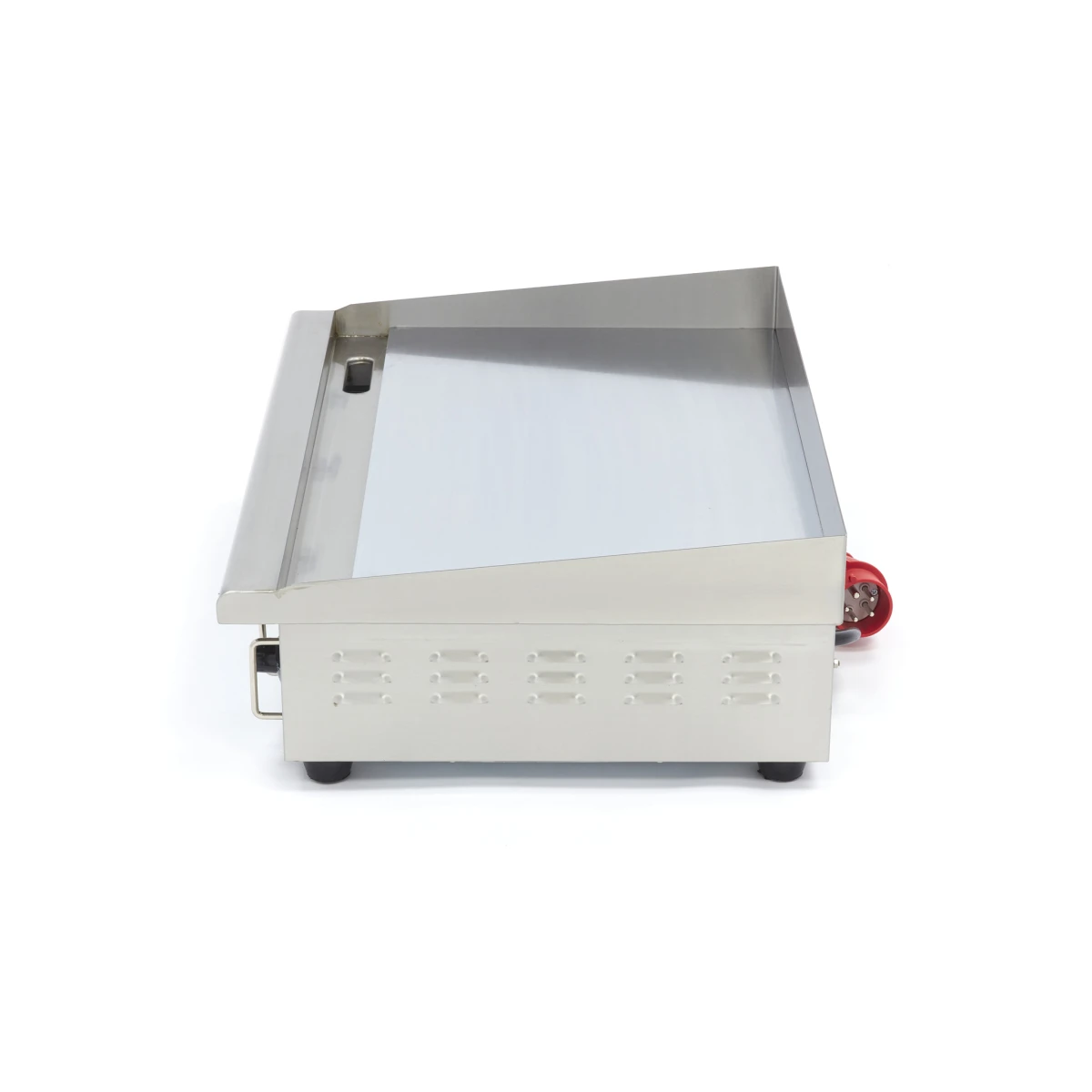 Die Temperatur dieser elektrischen Grillplatte kann zwischen 50ºC und 300ºC eingestellt werden. So können Sie verschiedene Produkte bei unterschiedlichen Temperaturen zubereiten. Die Bratplatte ist außerdem mit einer praktischen Temperaturanzeige ausgestattet. Wenn das Licht erlischt, wissen Sie, dass Sie mit dem Kochen beginnen können. Da sicheres Arbeiten in einer professionellen Küche sehr wichtig ist, ist die Bratplatte mit einem Überlastungsschutz ausgestattet. Der hohe Edelstahl-Spritzschutz rund um die Grillplatte verhindert Ölspritzer. Der Elektrogrill ist außerdem sehr benutzerfreundlich. Sie schalten ihn einfach mit der Einschalttaste ein, fetten die Grillfläche ein und warten, bis die richtige Temperatur erreicht ist, bevor Sie grillen.