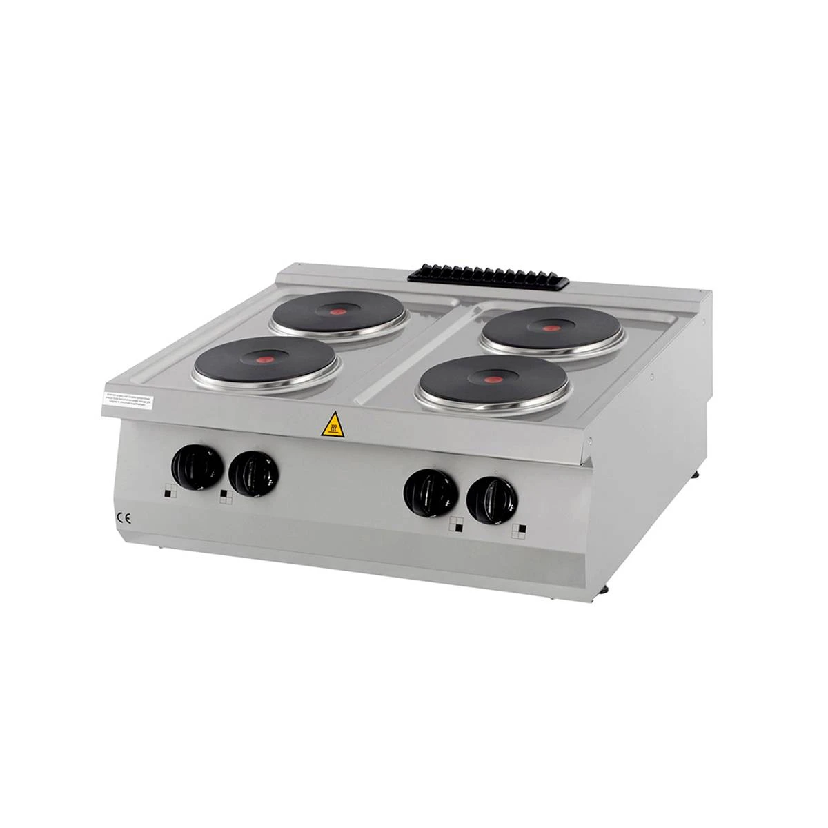 Wenn Kochgeräte täglich sehr intensiv genutzt werden, ist es wichtig, dass sie viel aushalten und lange halten. Aus diesem Grund wurde dieses vierflammige Elektrokochfeld speziell für stark frequentierte Großküchen in Restaurants, Kantinen und Hotels entwickelt. Das Gehäuse ist aus dickem Edelstahl gefertigt. Deshalb ist die robuste und sehr langlebige Konstruktion hervorragend für den häufigen Gebrauch geeignet. Da dieses Kochfeld recht schwer ist, um es schnell zu bewegen, können Sie einen Edelstahlsockel dazu bestellen.