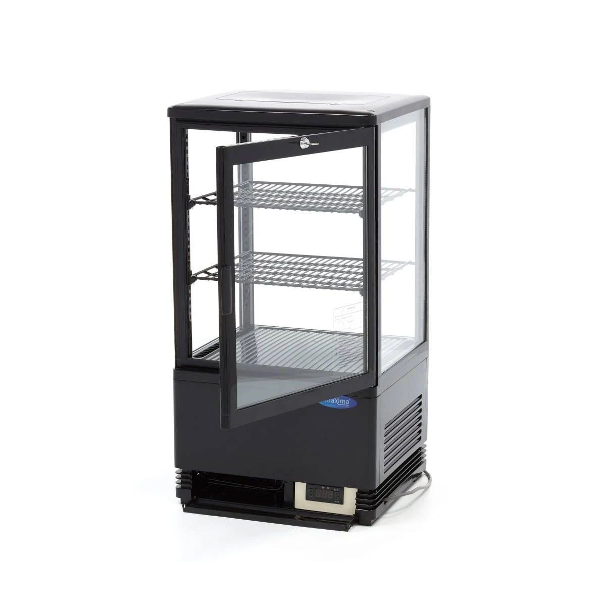 Die Kühlvitrine verfügt über einen einzigartigen Kühlzyklus, der dafür sorgt, dass die Eisbildung reduziert wird. Auf diese Weise bleibt die Kühlvitrine ausreichend kalt, ohne Temperaturschwankungen. Das für diese Kühlvitrine verwendete Kältemittel ist R600a und ist frei von FCKW. Die Kühlvitrine wird alle sechs Stunden automatisch abgetaut. Die LED-Beleuchtung können Sie ganz einfach über eine Taste am Display an der Vorderseite des Geräts ein- und ausschalten. Darüber hinaus können Sie die Abtaufunktion mit derselben Taste auch manuell einschalten. Die Reinigung der Kühlvitrine ist dank des Kunststoffgehäuses und der Beschichtung der Einlegeböden sehr einfach. Diese professionelle Kühlvitrine ist in der Farbe Schwarz erhältlich.