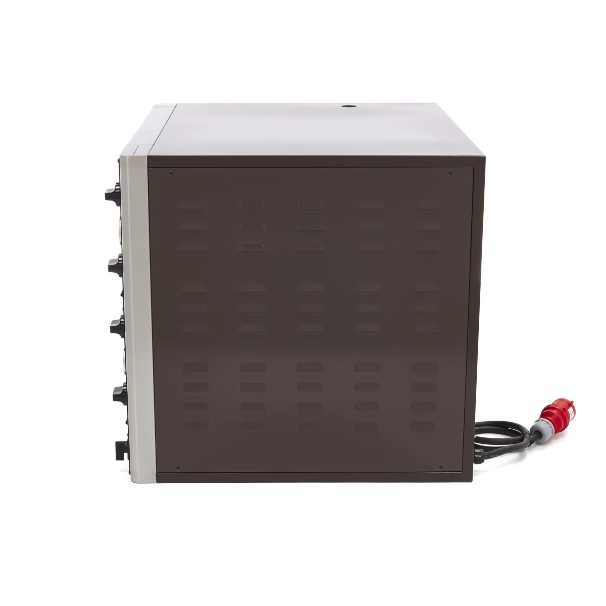 Pizzen können bei Temperaturen zwischen 50 und 500ºC gebacken werden. Die Temperatur kann auch leicht pro Kammer eingestellt werden. Im großen Innenraum befinden sich Steinplatten und ein Licht, so dass Sie den Fortschritt Ihrer Pizzen leicht erkennen können. An der Pizzatür können Sie sich nicht verbrennen, denn sie ist doppelt athermisch verglast. Der Pizzaofen verfügt außerdem über eine effiziente Wärmeverteilung und eine einfache analoge Steuerung.