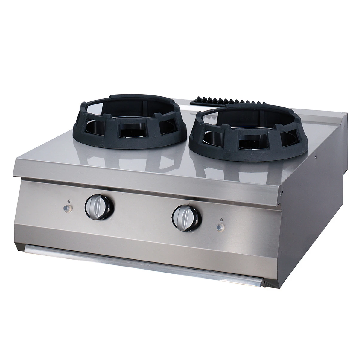 Die gusseisernen Kochstellen sind so konzipiert, dass sie für schwere Lasten in Großküchen geeignet sind. Da es sich um ein kompaktes Tischmodell handelt, kann es problemlos auf einen Tisch oder eine Arbeitsplatte gestellt werden. Natürlich ist es auch möglich, einen Sockel aus Edelstahl zu bestellen und den Wokkocher darauf zu installieren.