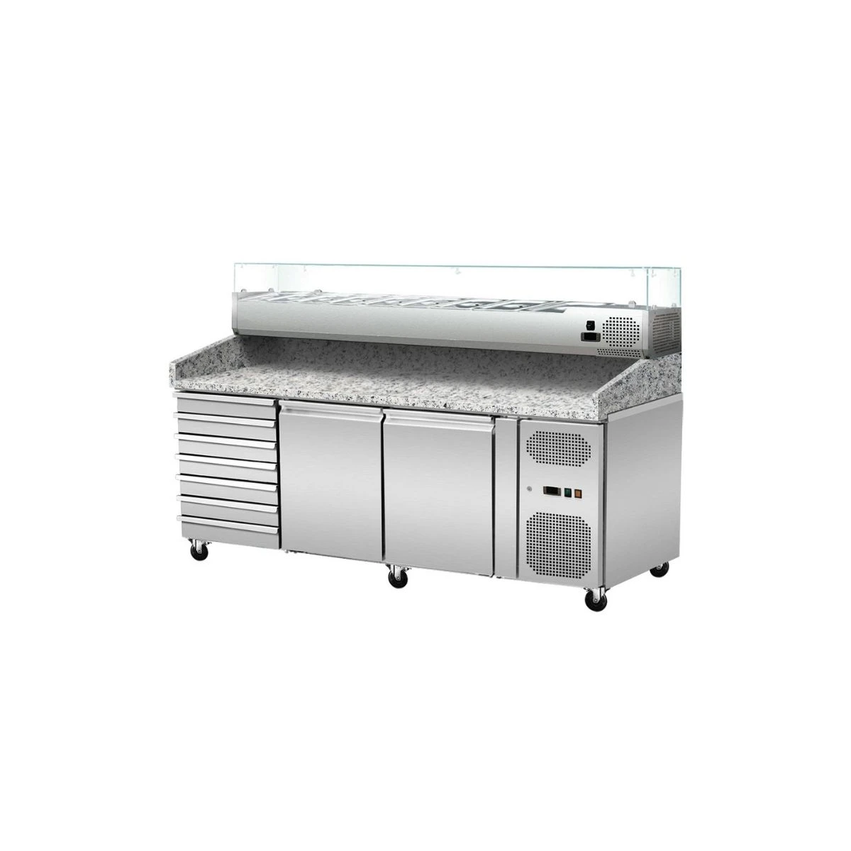 Skyrainbow Pizzakühltisch Granitplatte, 7 ungekühlte Schubladen 2 Türen, -2° bis +8° C, 2025 x 800 x 860