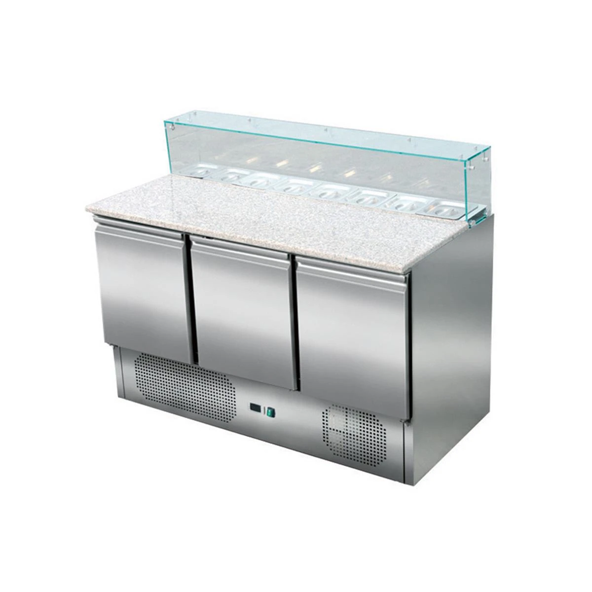 Skyrainbow Pizzasaladette 3-türig mit Granitarbeitsfläche, 8 x GN1/6, +2° / +8°C